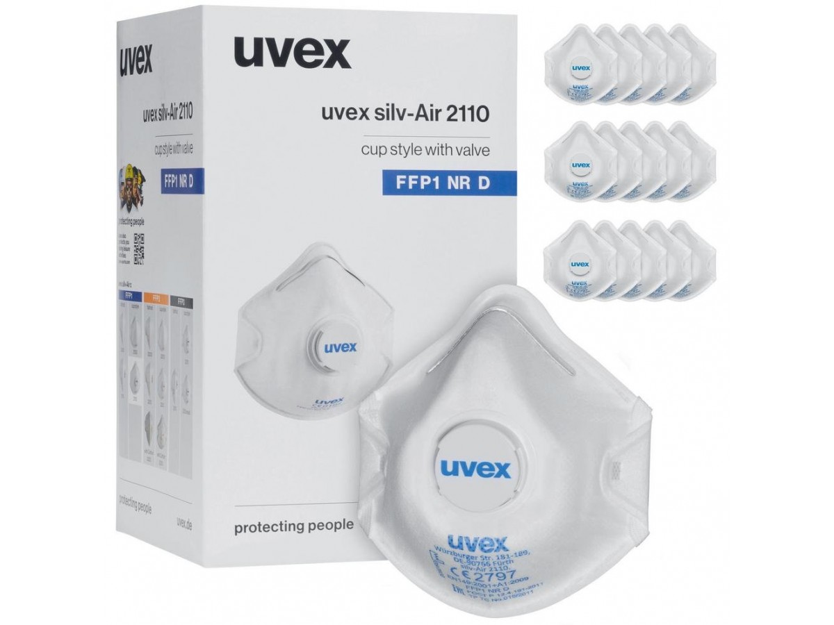 uvex silv-Air c 2110 — фильтрующий респиратор для защиты органов дыхания от твердых частиц и аэрозолей. Модель относится к серии uvex silv-Air c, которая включает классические формованные и складные маски, подходящие для различных форм лица и обеспечивающие надежную посадку.