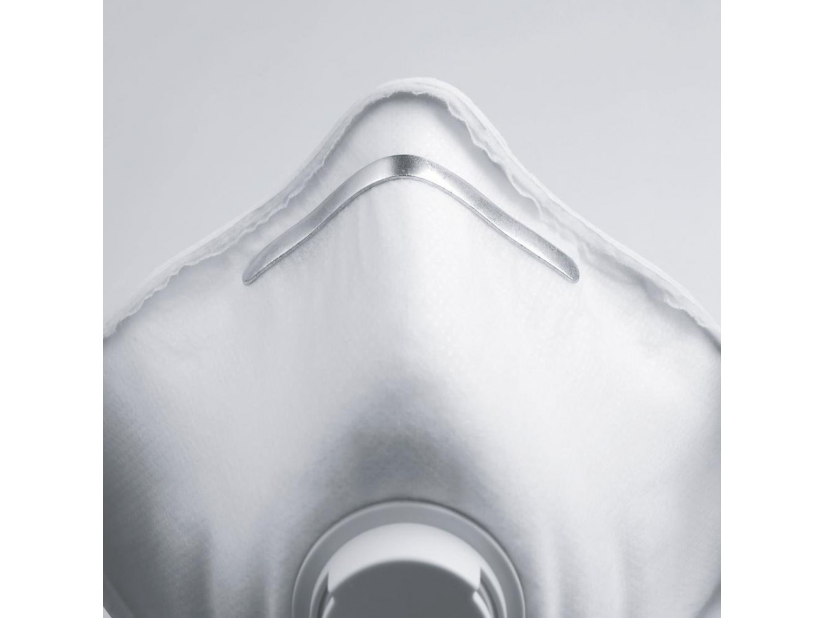Респиратор оснащен клапаном выдоха, который снижает сопротивление дыханию и уменьшает накопление тепла и влаги внутри маски.
