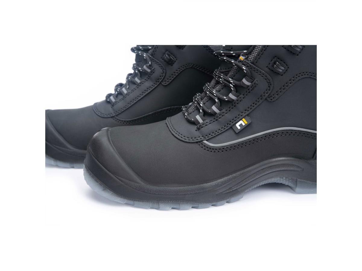 Ботинки оснащены неметаллическим композитным защитным подноском, который защищает пальцы ног от ударов и давления. Конструкция обуви полностью metal free, что делает её удобной для работы в условиях, где необходимо исключить использование металлических элементов.