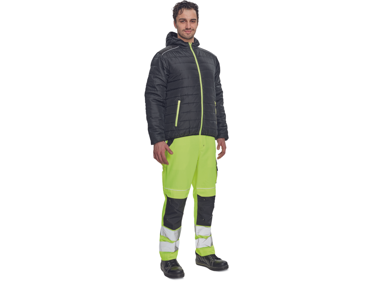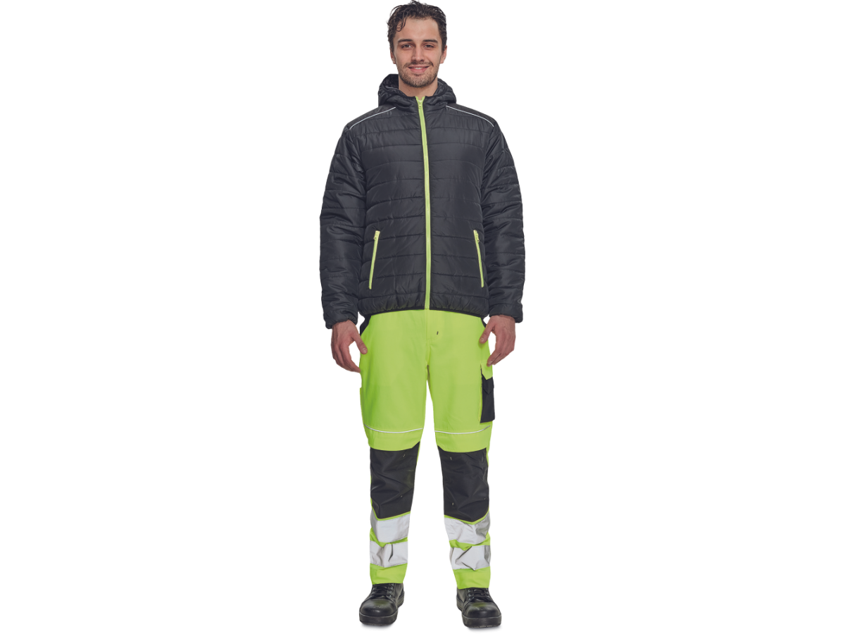 Куртка оснащена эластичной резинкой на поясе. По бокам расположены два кармана на молнии.
